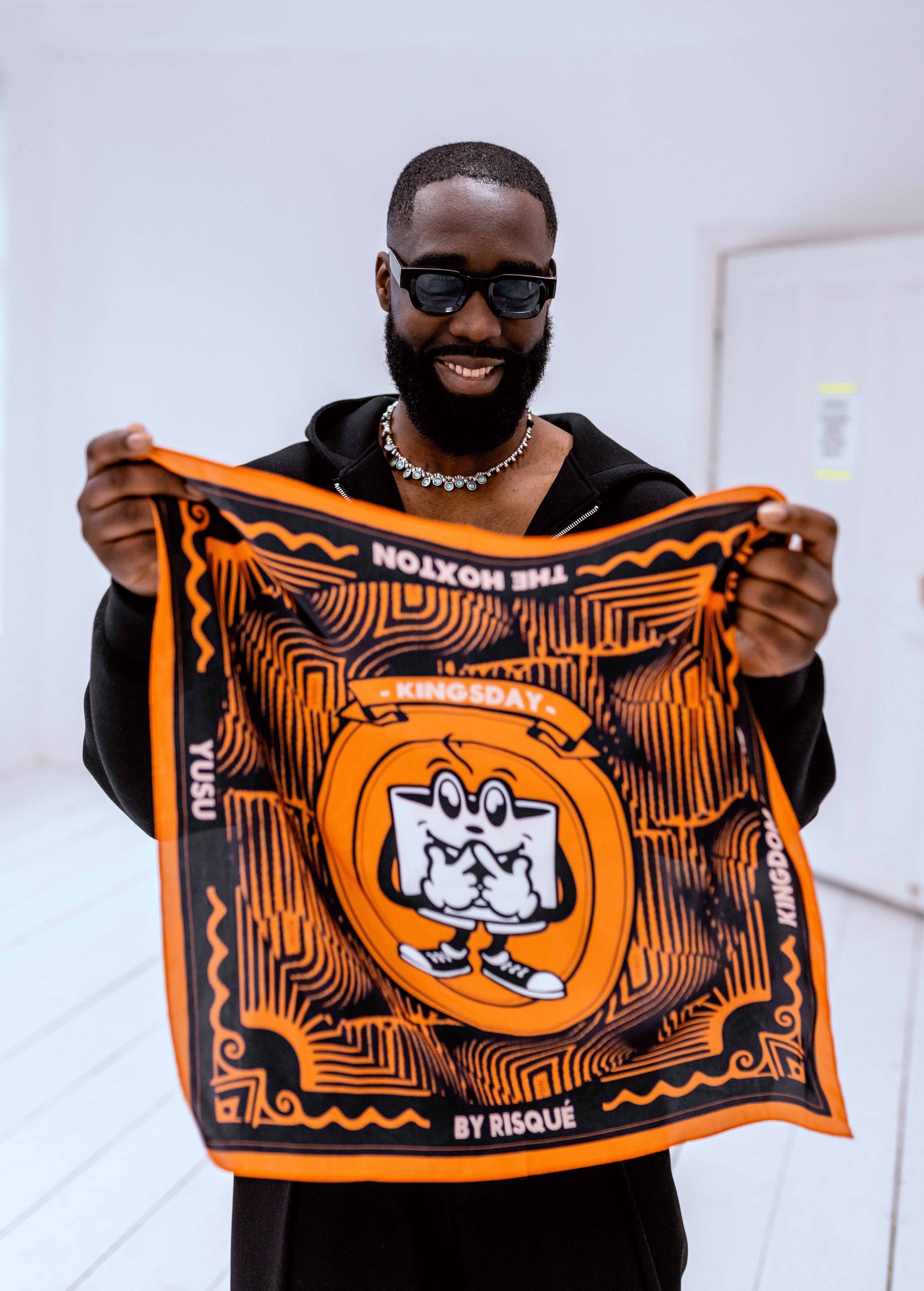 A bold tribute to unity, rhythm, and street elegance — this exclusive Kingsday collab scarf by BY RISUÉ, YUSU, and KINGDOM SOUND fuses fashion, music, and culture in one iconic piece.