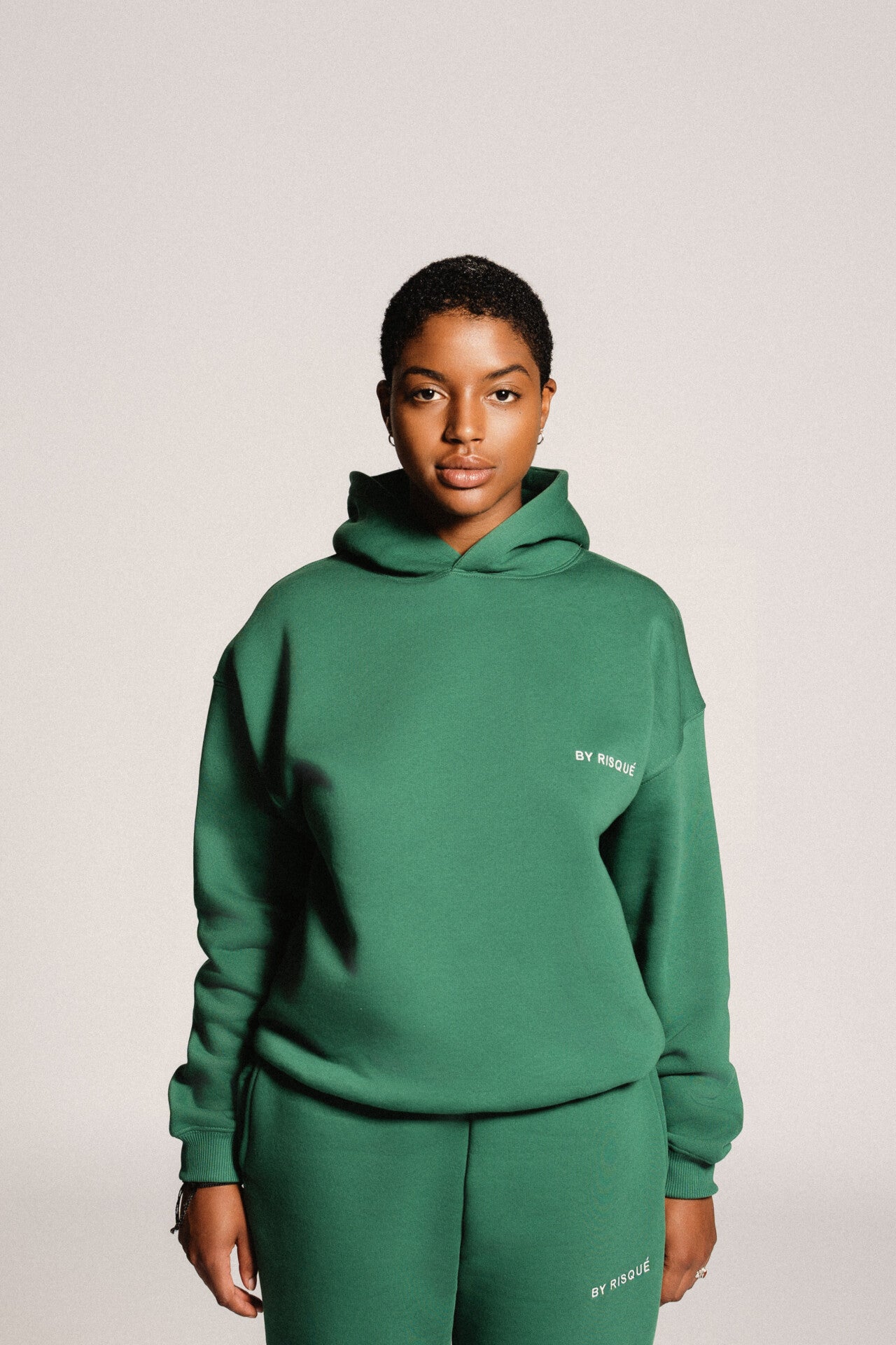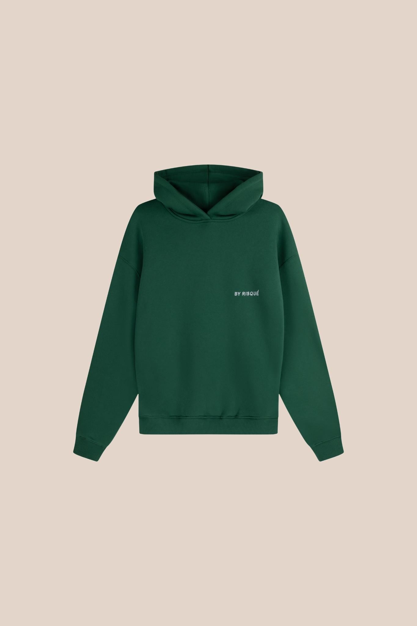 The comfortable boxy fit hoodie features the embroidered BY RISQUÉ logo on the left chest. It is the perfect hoodie for any season.